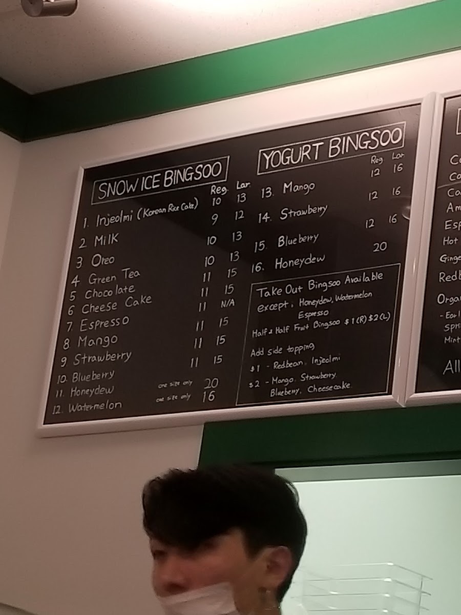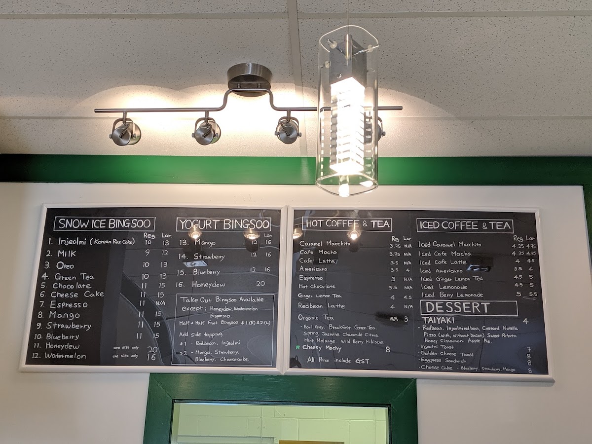 The menu is designed to accommodate customers looking for light desserts and iced beverages throughout the day. It is suitable for casual visits focused on sweet treats and refreshment rather than full meals, offering quick ordering options for individuals or groups interested in bingsu and complementary beverages.